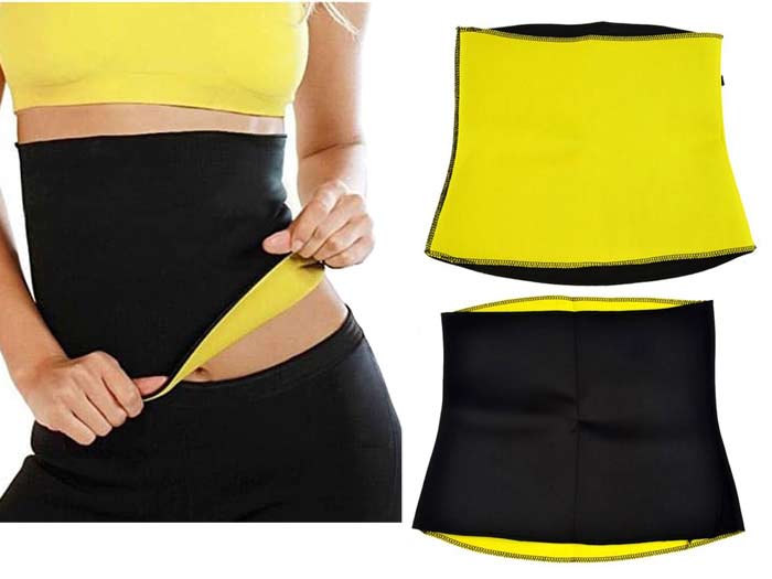 اغلب این شکم بندها از یک نوع پارچه پلیمری که به نام نئوپرین شناخته شده است، تولید می شوند.این نوع پارچه در لباس های مخصوص غواصی به علت عایق بودن به کار می رود.این امر موجب شده تا تبادل گرما و رطوبت مابین پوست و هوای محیط صورت نگیرد.این امر موجب افزایش تعریق به دنبال افزایش دمای بدن شده و موجب کاهش سایز می شود.